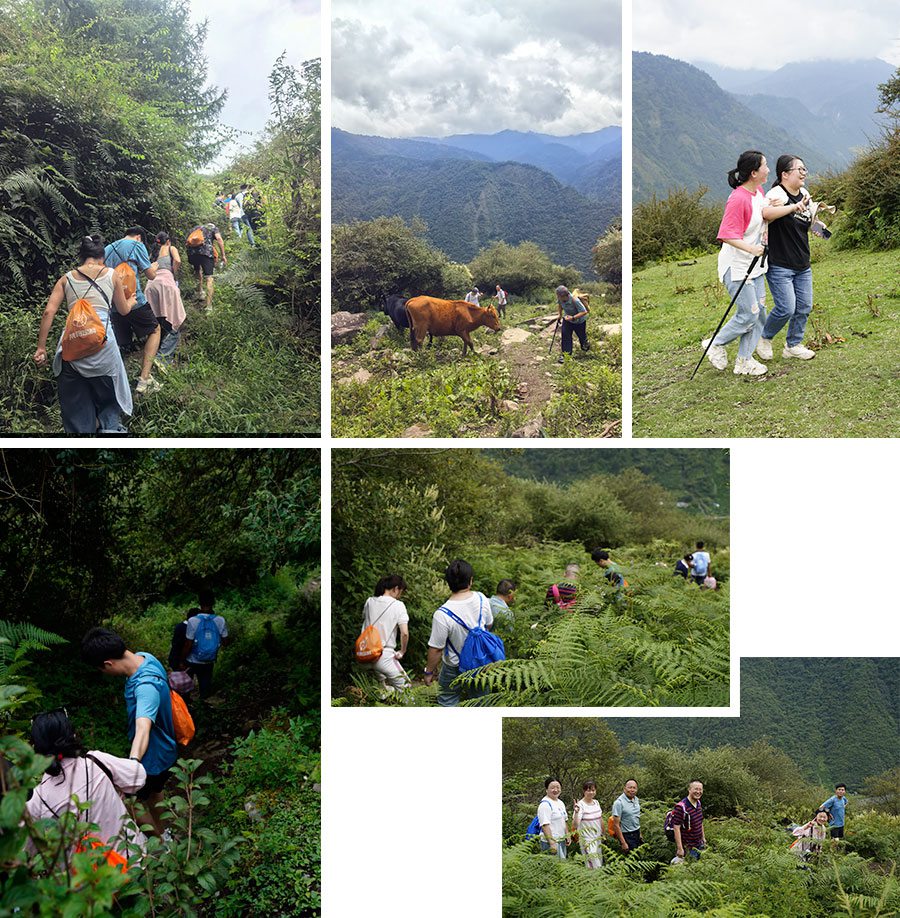 大家乘坐大巴首先到达拉拉虎森林日思夹牧场,拉拉虎森林位于四川阿坝藏族羌族自治州汶川县卧龙自然保护区,这是一座没有被开发的“野山”,山形近乎垂直,途中没有补给点,需自备干粮与水。负重前行,这更考验伙伴们的体力、耐力、意志力和团队协作力。虎身,爬一次,你就老实了!