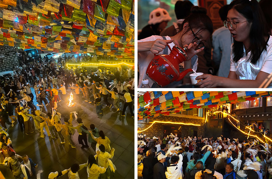 一杯青稞酒,做客不思走!乌黑的夜晚盖不住篝火燎朗,寒冷的空气侵不进炙热的人心。华鉴人与当地藏族同胞围着篝火起舞,感受川西的热情和友好。在这一刻,工作的压力得到了释放,快乐的血脉觉醒。每个人都会把这些美好记忆深深地带入梦中。