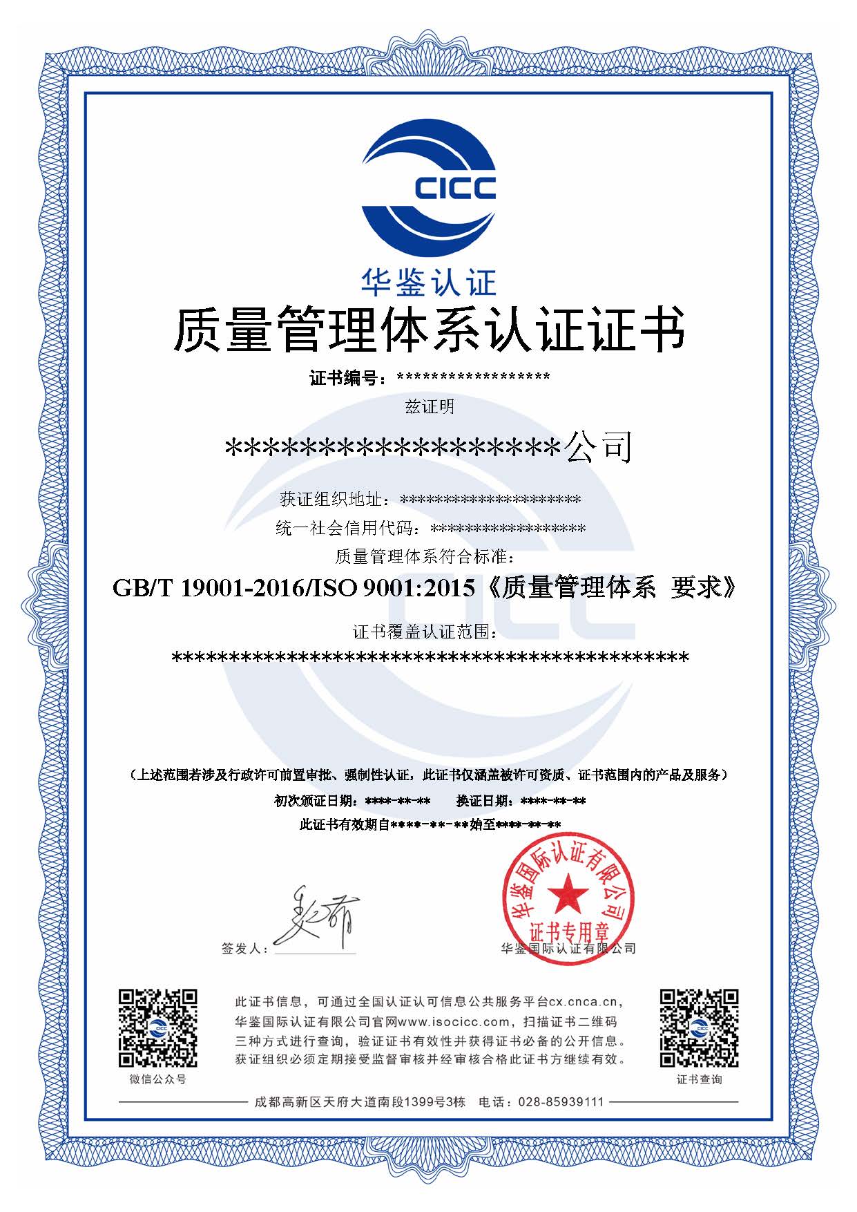 华鉴认证提供ISO9001质量体系认证服务,ISO9001质量管理体系认证使您从竞争者中脱颖而出,ISO9001质量管理体系认证展示了组织对满足质量高标准和客户满意的承诺,并且支持质量管理体系的持续改进,目前ISO9001质量管理体系新的版本为2015版。
