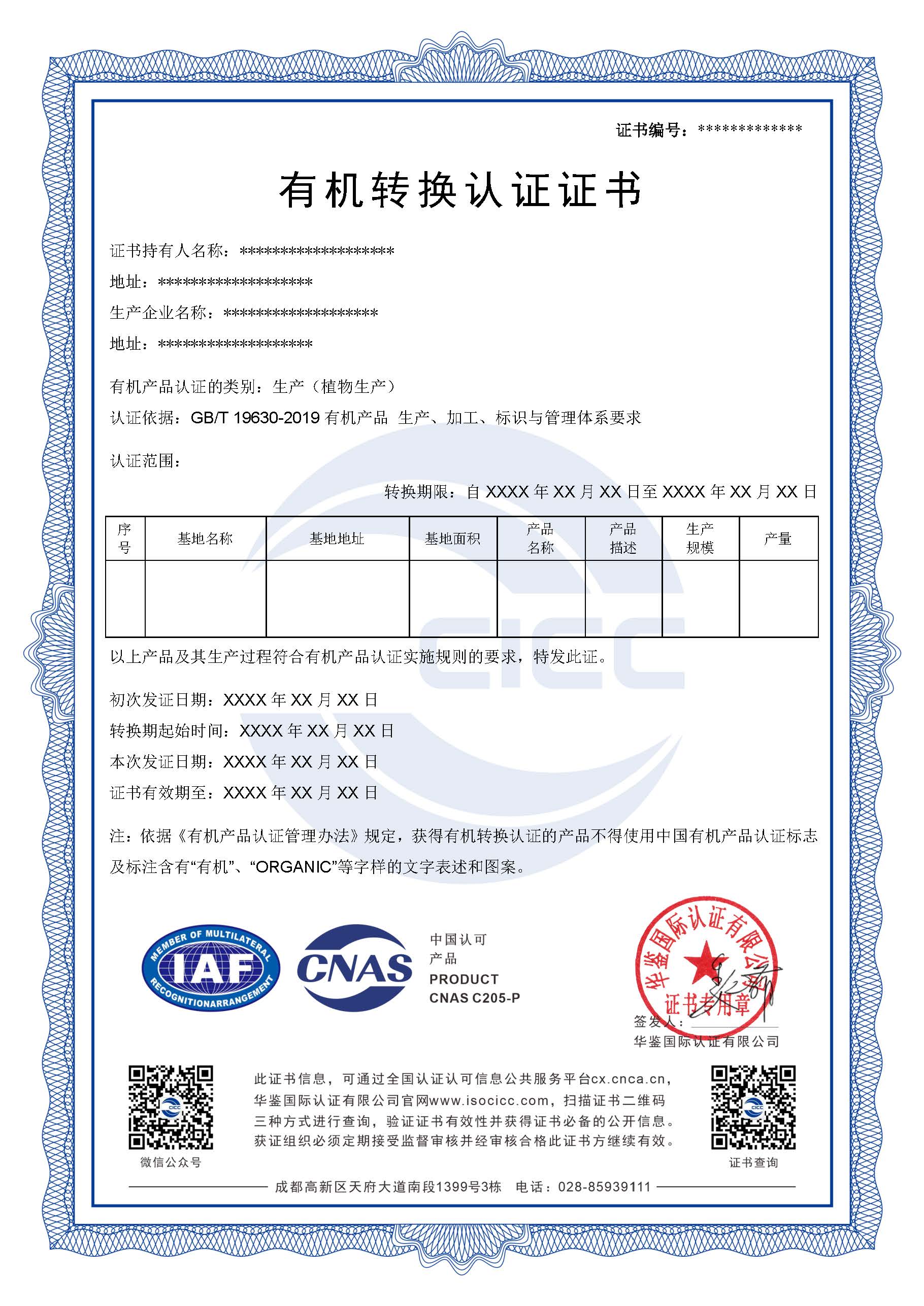 • 《有机产品认证实施规则》CNCA-N-009: 2019